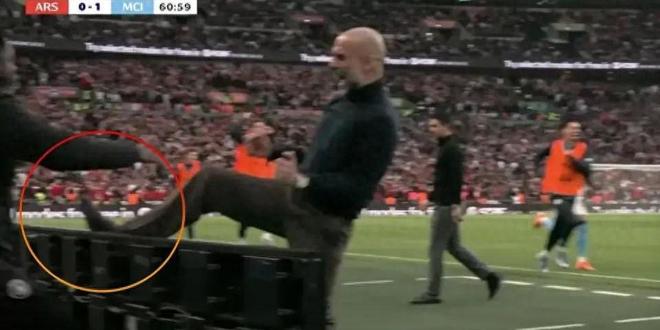 瓜迪奥拉激情庆祝引爆全场:脚踢广告牌、狂奔领黄牌
